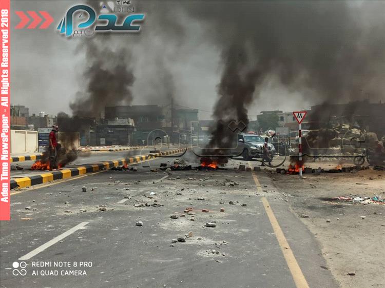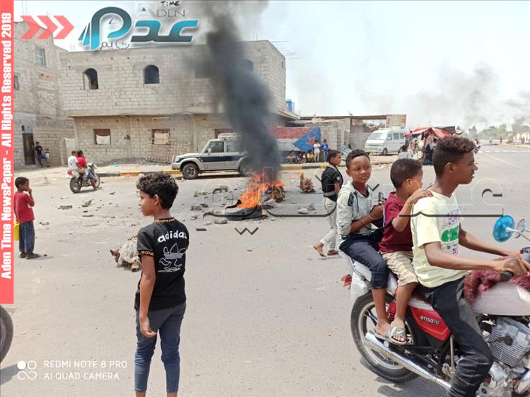 محتجون غاضبون يقطعون الطريق الرئيسي عدن _لحج