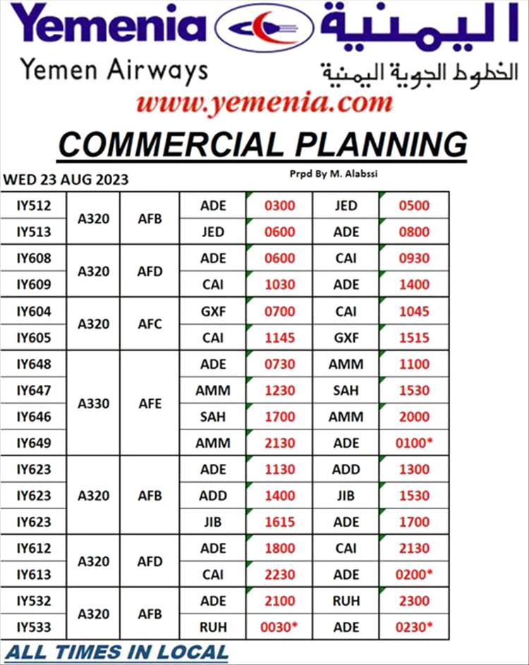 جدول مواعيد اقلاع رحلات طيران اليمنية ليوم غد الاربعاء كالتالي: