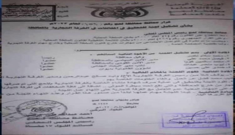 وكان محافظ لحج قد اصدر قرار بشأن تشكيل اللجنة المكلفة بالتحقيق في المخالفات المرتكبة بالغرفة التجارية .