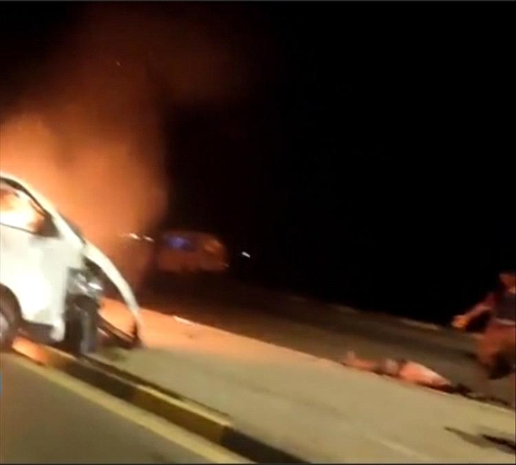 عاجل / في حادث سير مروع.. احتراق باص بخط الجسر عدن (صور)
