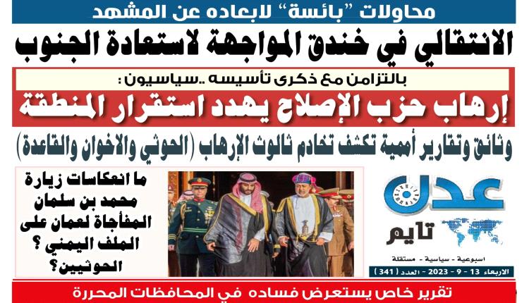 تصفح صحيفة عدن تايم بعددها رقم 341 الالكتروني .