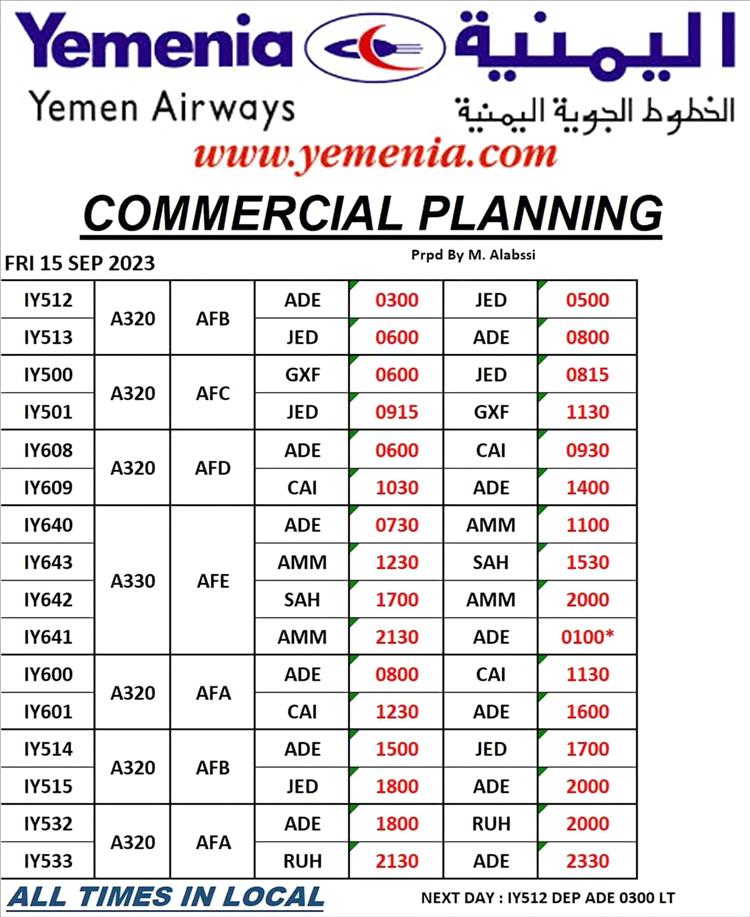 جدول مواعيد اقلاع رحلات طيران اليمنية ليوم غد الجمعة كالتالي: