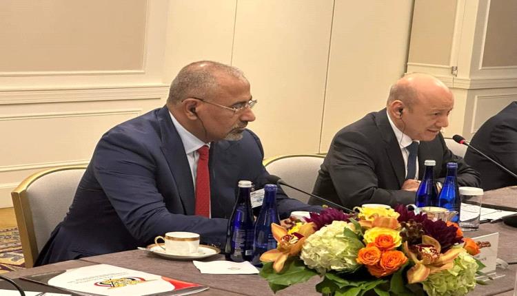 وقال الرئيس الزُبيدي: "انتهيت للتو بمعية أخي الدكتور رشاد العليمي رئيس مجلس القيادة الرئاسي، من جلسة مباحثات جمعتنا مع وزير الخارجية الأمريكي السيد انتوني بلينكن".