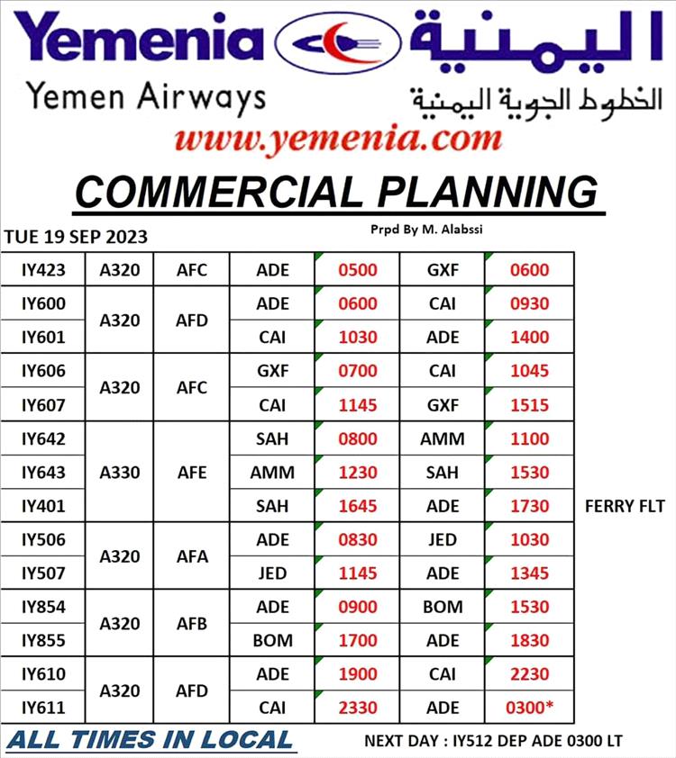 جدول مواعيد اقلاع رحلات طيران اليمنية ليوم غد الثلاثاء كالتالي،: