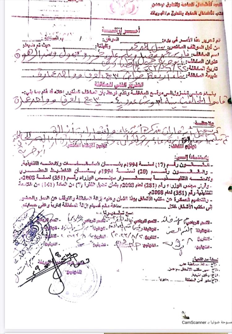 ونوه " بأن قائد الحملة الأمنية التي رافقت كحماية لقسم عوائق المديرية تواصل بقيادة وحدة حماية الأراضي التي بدورها أمرت بالانسحاب فورا من الموقع.