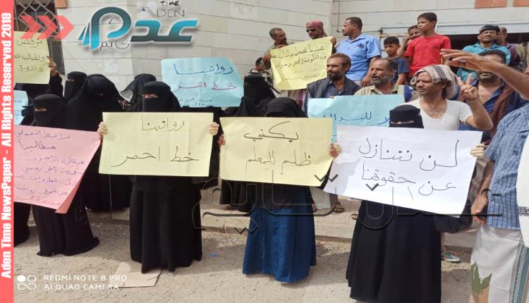 نفذ اليوم المعلمين والمعلمات في عدد من مدارس الحوطة وتبن وباقي المديريات الأخرى وقفة احتجاجية أمام مكتب التربية والتعليم بمحافظة لحج للمطالبة بوقف تحويل رواتبهم عبر بنوك ومحلات الصرافة كون ذلك ضاعف من معاناتهم وعدم قدرة عدد كبير منهم على استلام الراتب نتيجة الازدحام والفوضى .