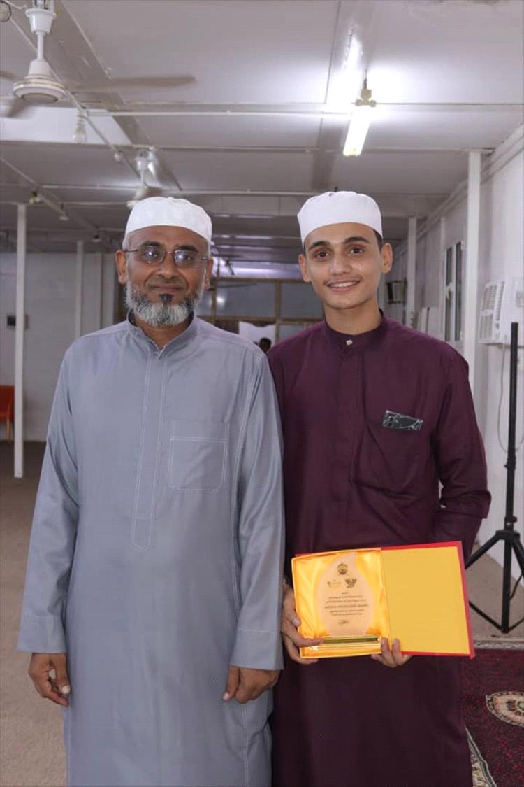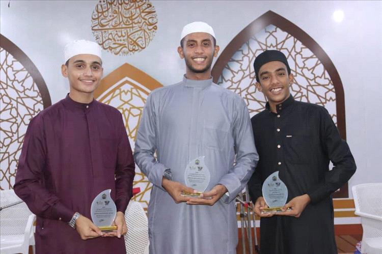 كُرِّم في ختام الحفل الفائزين في المسابقة صاحبَي المركز الأول/ إبراهيم أحمد المحضار وأبوبكر أسامة حسام الدين وصاحب المركز الثاني/ محمد فتحي أنور.