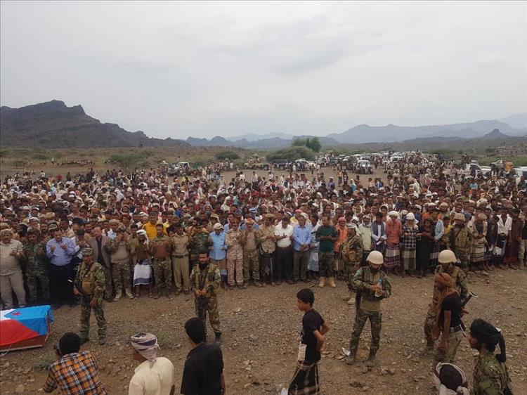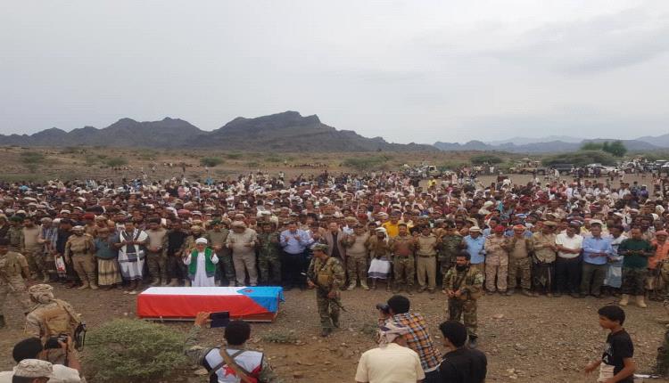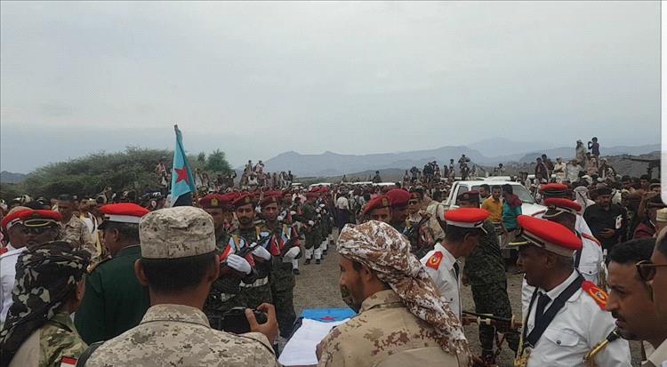تشييع مهيب لجثمان الشهيد القائد سند حمايد الحوشبي بمسيمير لحج