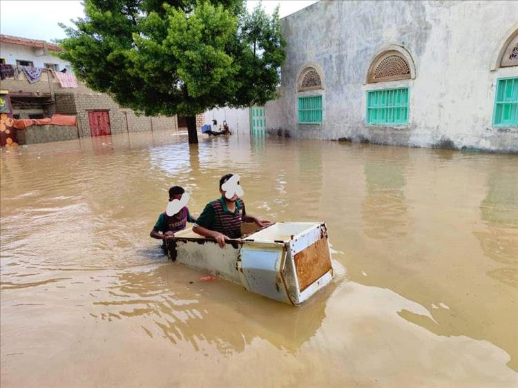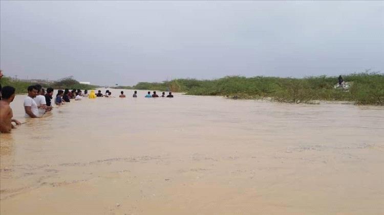 صور - السيول تحاصر المنازل والأحياء في مديريات شرق حضرموت