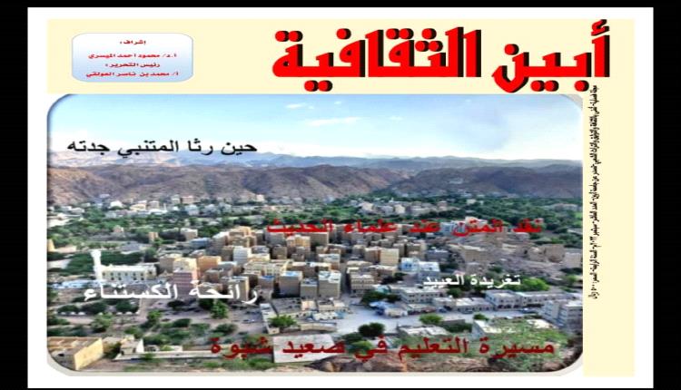صدر العدد العاشر من مجلة " أبين الثقافية " سبتمبر 2023 ، مجلة دورية تعنى بالثقافة والتوثيق والتراث الشعبي، تصدر عن جامعة أبين.