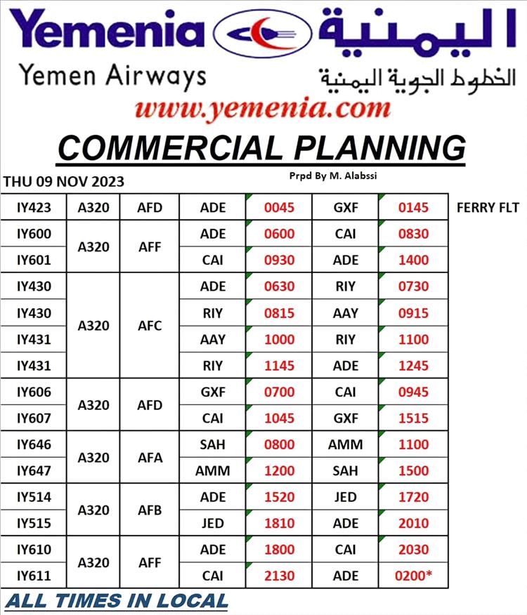 جدول مواعيد اقلاع رحلات طيران اليمنيه ليوم غد الخميس