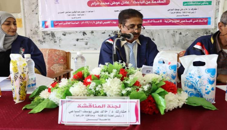 حضر المناقشة العلنية الأستاذ الدكتور/عبدالفتاح الشعيبي عميد كلية صبر للعلوم والتربية و أقرباء الباحث وأصدقاءه وجمع غفير من الباحثين والطلاب الدارسين في كلية صبر للعلوم والتربية بجامعة لحج، متمنيين له مواصلة مشواره العلمي لنيل الألقاب العلمية الرفيعة ومزيدا من التوفيق في حياته العلمية والعملية.
