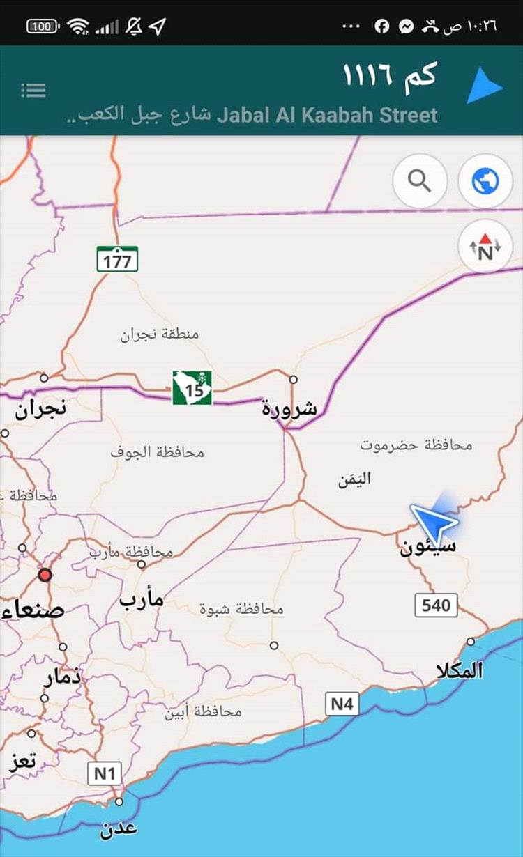 وقال "شاهد المسافة بين موقعي في السهم الازرق وبين البحر اكثر من 270 كيلو وفي عدن تشوف البحر وانت تتمشى في شوارعها".