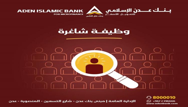 بنك عدن للتمويل الأصغر يعلن عن عدد من الوظائف