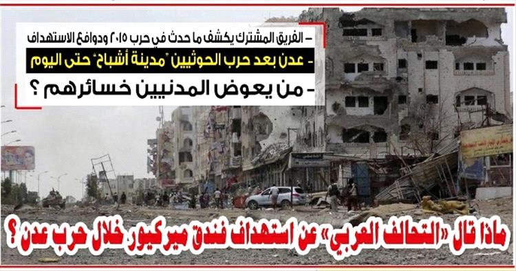 وتبين للفريق المشترك أن فندق ميركيور محل الادعاء يقع في مديرية خور مكسر في محافظة عدن في الجهة الشرقية المطلة على خليج عدن، وهو عبارة عن مبنى كبير متعدد الطوابق ، كما تبين أنه وردت معلومات استخباراتية لقوات التحالف عن قيام ميليشيا الحوثي المسلحة بالاستيلاء على مبنى فندق ميركيور، وتستخدمه لإدارة العمليات العسكرية في محافظة عدن، وهو ما يعد هدفاً عسكرياً مشروعاً يحقق استهدافه ميزة عسكرية ملموسة ومباشرة وأكيدة، وبالتالي سقطت عنه الحماية المقررة للأعيان المدنية استناداً للمادة (52) من البروتوكول الإضافي الأول لاتفاقيات جنيف والقاعدة (8) من القانون الدولي الإنساني العرفي، وتوافر درجات التحقق من خلال مراقبة المبنى بواسطة منظومة الاستطلاع والمراقبة والمصادر الأرضية لأيام عدة، والتي أكدت استخدام ميليشيا الحوثي المسلحة للمبنى لأغراض عسكرية، وذلك استناداً إلى القاعدة (16) من القانون الدولي الإنساني العرفي