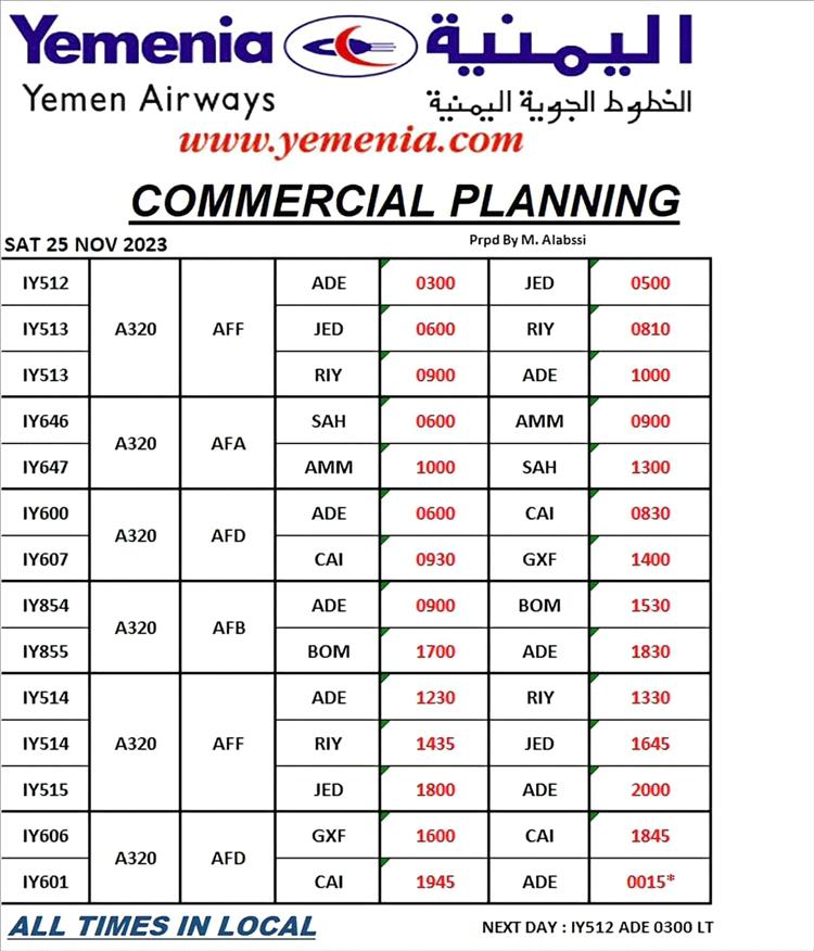 جدول مواعيد اقلاع رحلات طيران اليمنيه ليوم غد السبت
