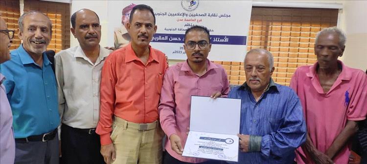 وتحدث نصر باغريب نائب الأمين العام للنقابة، عن مناقب الفقيد أحمد العقربي كإنسان تجرد من الذاتية، وكقلم صحفي خاض غمار الكتابة في كل فنون الكتابة الصحفية، بل وامتد إلى الكتابة التوثيقية لهوية الجنوب.