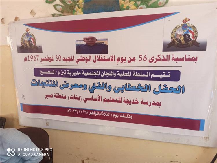 اقيم في مدرسة خديجة للبنات بمديرية تبن بمحافظة لحج الثلاثاء حفل خطابي وفني ومعرض لمنتجات اللجان المجتمعية بالمديرية.