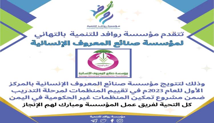 "روافد" تهنئ "صنائع المعروف" بحضرموت بمناسبة حصولها على المركز الأول
