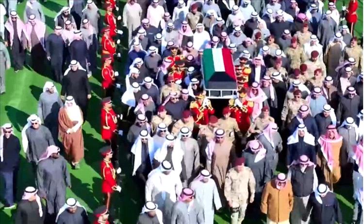 تقدم أمير الكويت الشيخ مشعل الأحمد الجابر الصباح، صفوف المصلين لأداء صلاة الجنازة على جثمان المغفور له بإذن الله تعالى أمير الكويت الراحل.