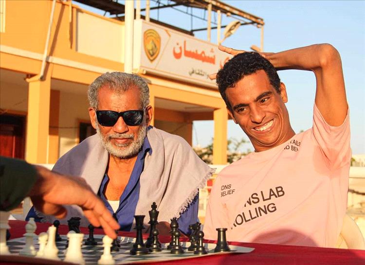 بعزيمة مليئة بالفخر، انضم "ناصر محمد البوقعي" إلى صفوف فريق نادي شمسان الرياضي بلعبة الشطرنج، مؤكداً أنه لا أي شيء يقف أمام طموحه كإنسان حتى ولو كان معاقاً، ليخرج من ضيق قيود المجتمع إلى البطولات والمنافسات من بوابة ناديه شمسان.