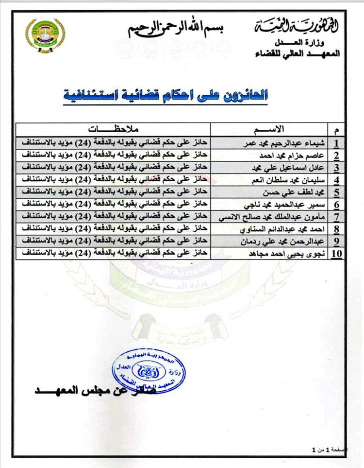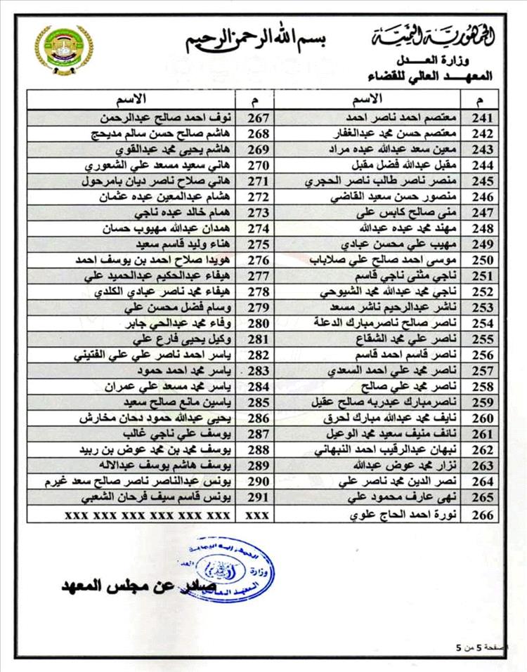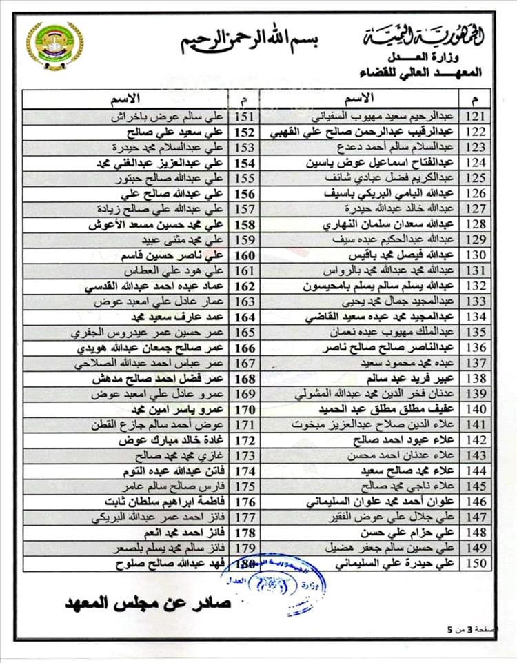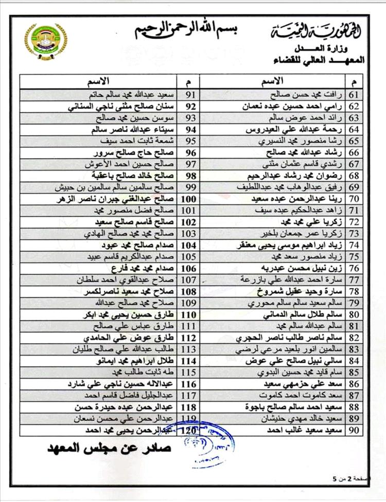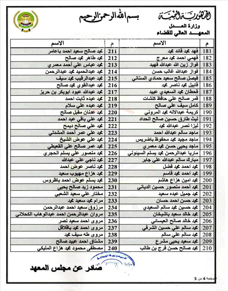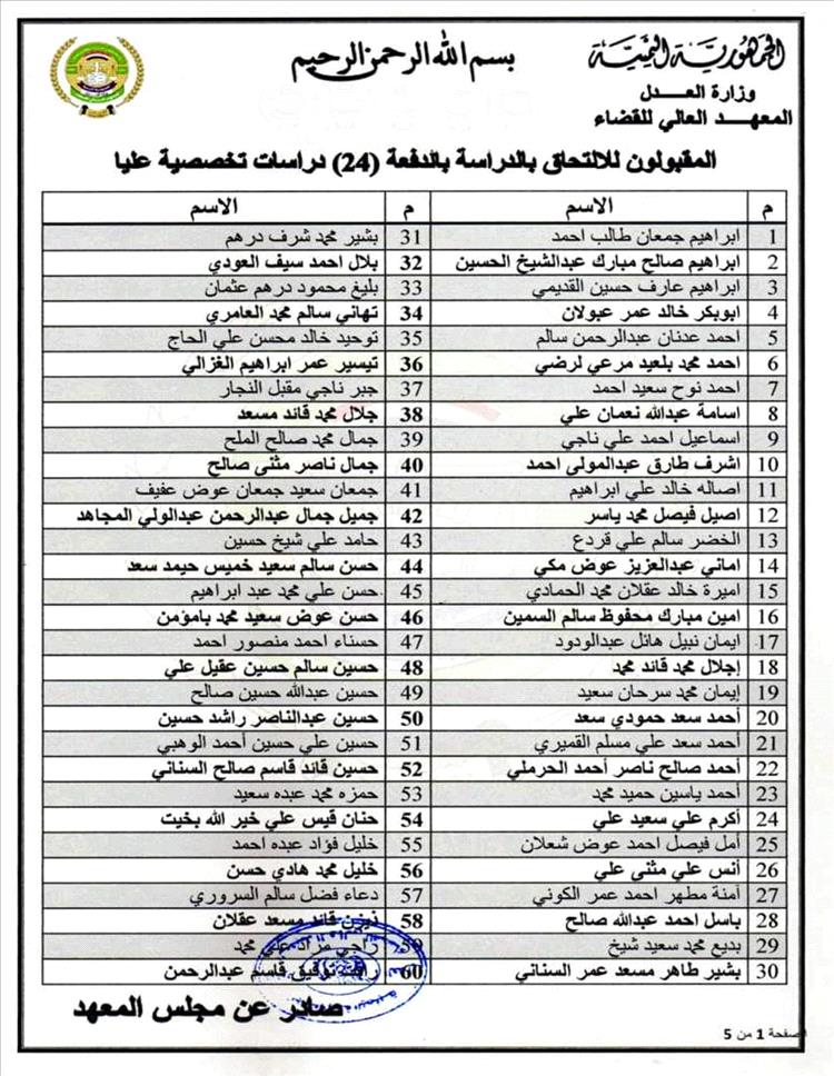 كشوفات المقبولين للدفعة (24) دراسات تخصصية عليا في المعهد العالي للقضاء