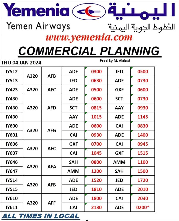 جدول مواعيد اقلاع رحلات طيران اليمنيه ليوم غد الخميس