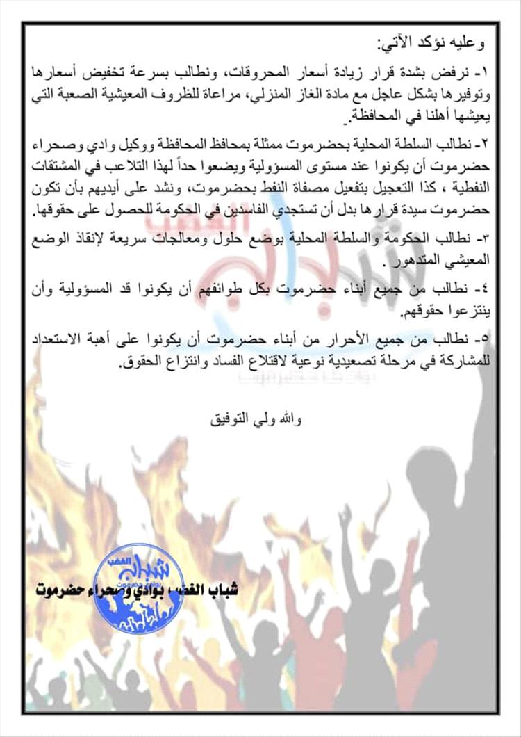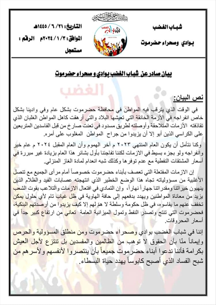 صادر عن شباب الغضب بوادي و صحراء حضرموت