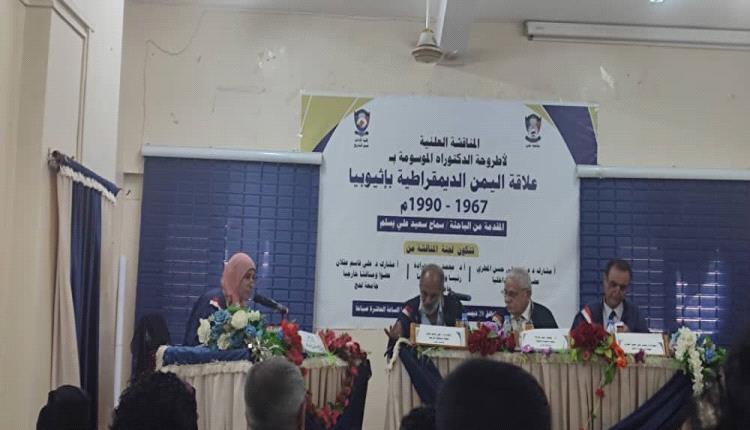 نهنئ ونبارك للباحثة سماح سعيد علي يسلم بنيل الدكتوراه بامتياز مع مرتبة الشرف على رسالتها الموسومة بـ ”علاقة اليمن الديمقراطية بإثيوبيا - خلال المدة (١٩٦٧ ــ ١٩٩٠م) .