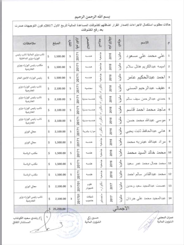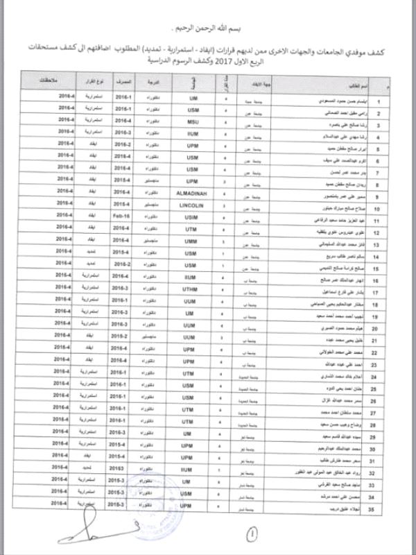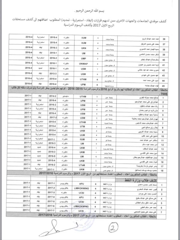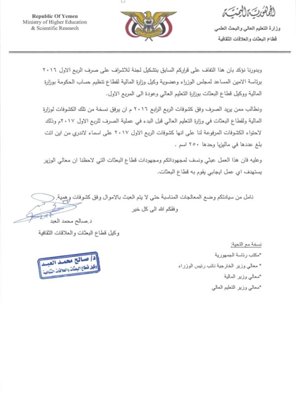 فضيحة .. الحكومة تتكبد مليون ومائتين الف دولار جراء اضافة 250 اسما الى كشوفات المبتعثين اليمنيين بـ #ماليزيا ( وثائق )