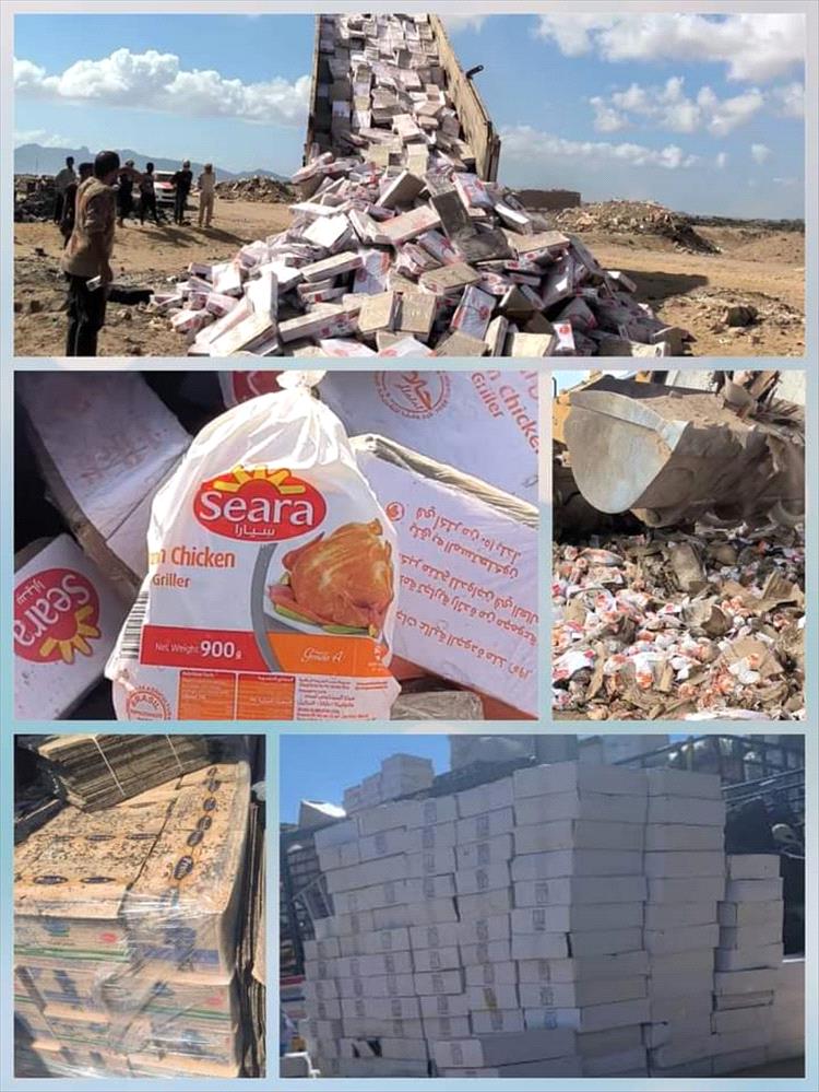 اتلاف 2898 كرتون من الدجاج البرازيلي المجمد بالعاصمة عدن