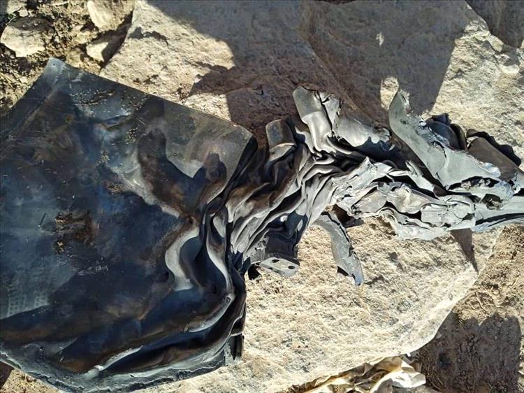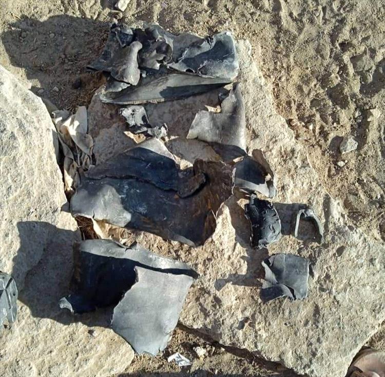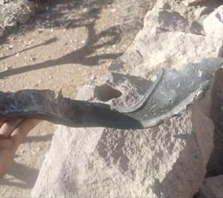 تداول نشطاء عبر برامج التواصل الاجتماعي، صور تظهر بقايا من حطام الصاورخ البالستي الحوثي الذي استهدف عصر اليوم الاثنين مديرية جحاف بمحافظة الضالع.