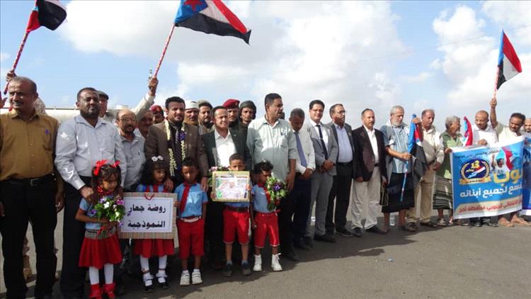 في مدخل مدينة زنجبار احتشدت جموع غفيرة من أبناء أبين لاستقبال إخوانهم من أبناء لحج، حاملين أعلام دولة الجنوب، ومرددين الشعارات والأهازيج الثورية المعبرة عن ابتهاجهم بقدوم إخوانهم من أبناء لحج، الذين بدت على وجوههم مشاعر البهجة والسرور، وهو ما ترجم بعض مفرداتها رئيس انتقالي لحج وضاح الحالمي الذي تحدث باسم وفد أبناء لحج بقوله: "سعادتنا لا توصف بهذا اللقاء واليوم التاريخي.. أتيناكم من لحج المحروسة إلى أبين النضال والتاريخ لنُسمع القاصي والداني بأننا إخوة وجسد واحد لن يفرقنا أحد، سنمضي معًا على طريق النضال لنطوي صفحات الماضي ونستعيد دولتنا الجنوبية.. اليوم نحن في أبين وقريبا سنقول كما قال شاعر لحج: (سنجتمع في لحج والخير دفاق)".