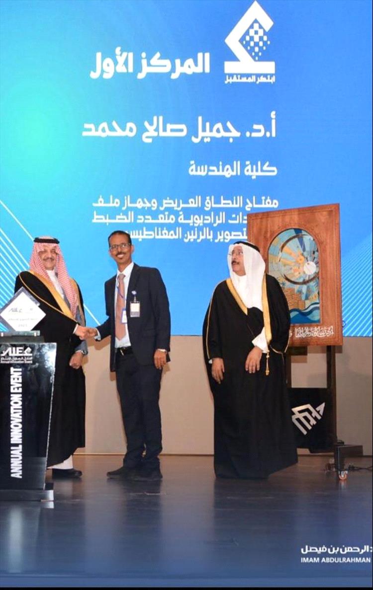 تهانينا القلبية للاستاذ الدكتور جميل صالح محمد الجعدني ابن القلوعة في حصوله على الجايزه الأولى في المشاريع المبتكرة من جامعة الامام عبدالرحمن بن فيصل بالدمام وحصل على المركز الأولى على مستوى المملكه وتم تكريمه من امير الدمام