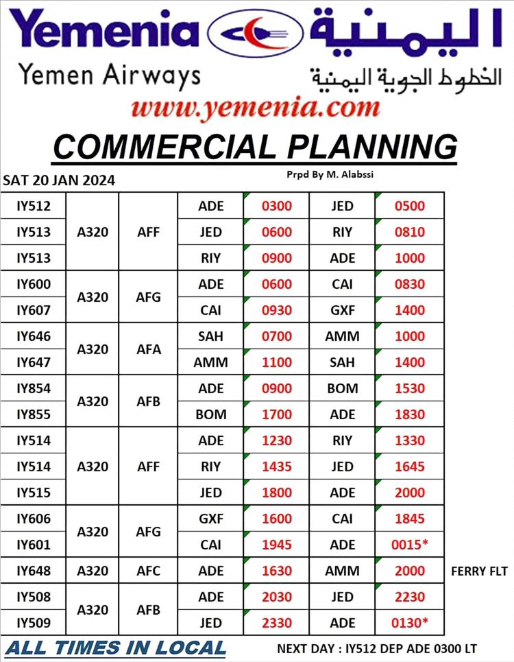 جدول مواعيد اقلاع رحلات طيران اليمنيه ليوم غد السبت