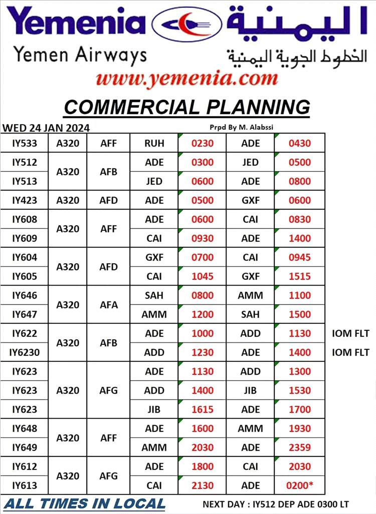 جدول مواعيد اقلاع رحلات طيران اليمنيه ليوم غد الاربعاء