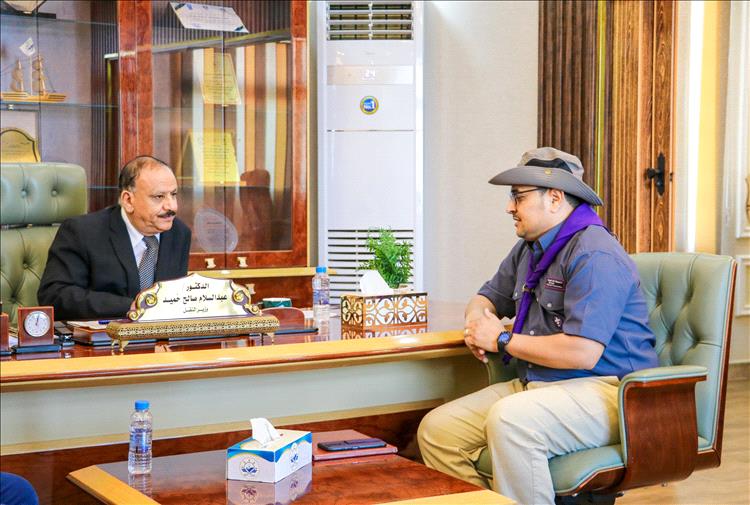 كرم عضو اللجنة الكشفية العربية القائد مشعل الداعري مفوض عام جمعية الكشافة والمرشدات، اليوم معالي وزير النقل د. عبد السلام حُميد في ديوان عام الوزارة بعدن بدرع تذكاري، مقدما الشكر والتقدير لمعاليه لدعمه مشاركة وفد الجمعية بالمخيم العربي ال 33 المرموم الذي اقيم في دبي بالامارات العربيه المتحده كما استعرض تاريخ واسهامات الكشافة اليمنية التي تأسست في مدينة عدن عام 1915م.
