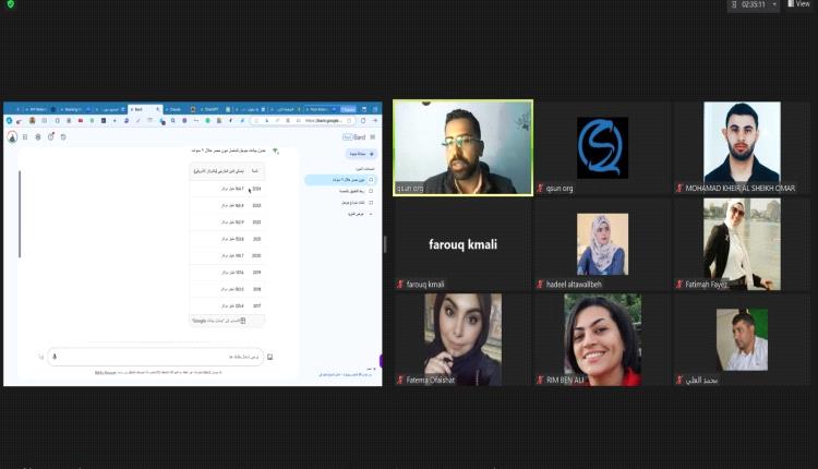 اقامت مؤسسة كيو سن للسلام والتنمية الإعلامية ومجموعة أوش لصناعات الذكاء الاصطناعي ورشة تدريبية افتراضية بعنوان "استخدامات الذكاء الاصطناعي في العروض التقديمية وشيتات ومستندات جوجل"، اليوم الجمعة 26 كانون الثاني 2024 استهدفت 20 صحفي وصحفية من المنطقة العربية، دربها وأدارها رئيس مجموعة أوش المهندس شحاته السيد مدير مجتمع مشروع ميتا للصحافة في الشرق الأوسط.