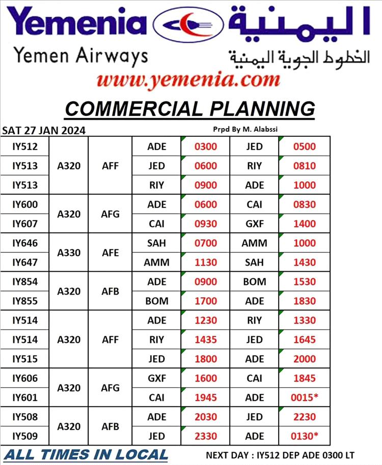 جدول مواعيد اقلاع رحلات طيران اليمنيه ليوم غد السبت