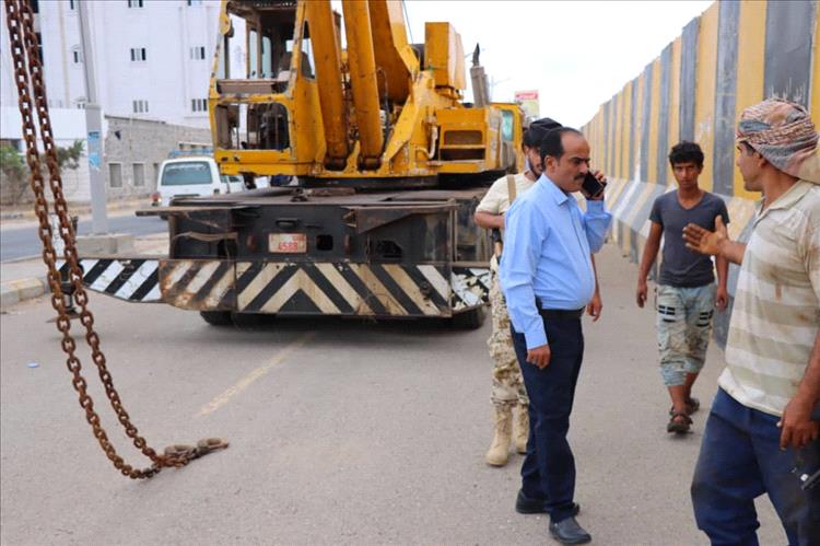كما تابع مدير عام خورمكسر ، أعمال رفع الحواجز الخرسانية من خط مطار عدن الدولي ، تمهيدا لفتح الخط المغلق امام حركة سير المركبات .