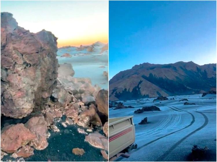 وثق نشطاء الصقيع أو التجمد الذي غطى حرة العيص في منطقة المدينة المنورة صباح اليوم الجمعة، حيث وصلت درجة الحرارة إلى 4 درجات تحت الصفر.
