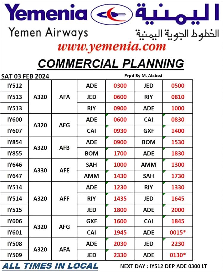 مواعيد اقلاع رحلات طيران اليمنية ليوم غد السبت كالتالي: