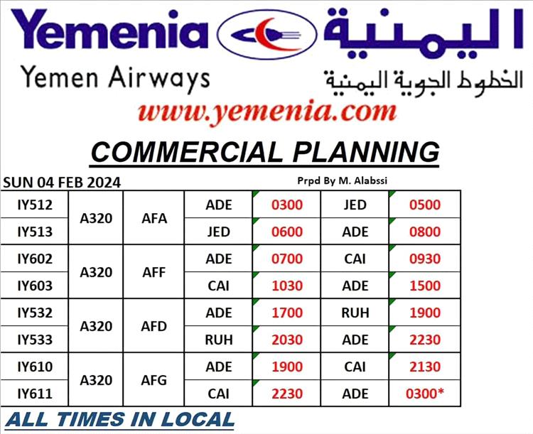 مواعيد اقلاع رحلات طيران اليمنية ليوم غد الاحد كالتالي:
