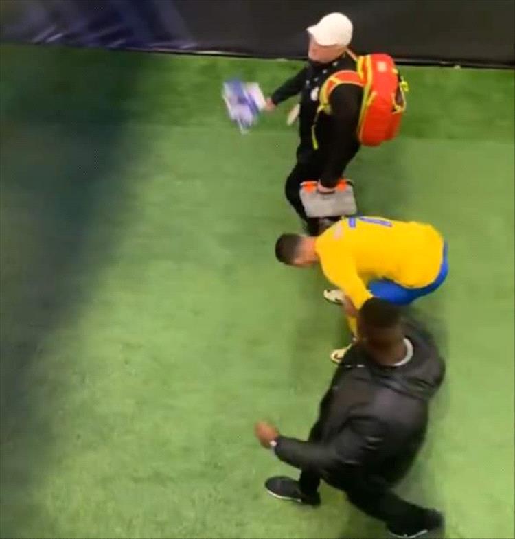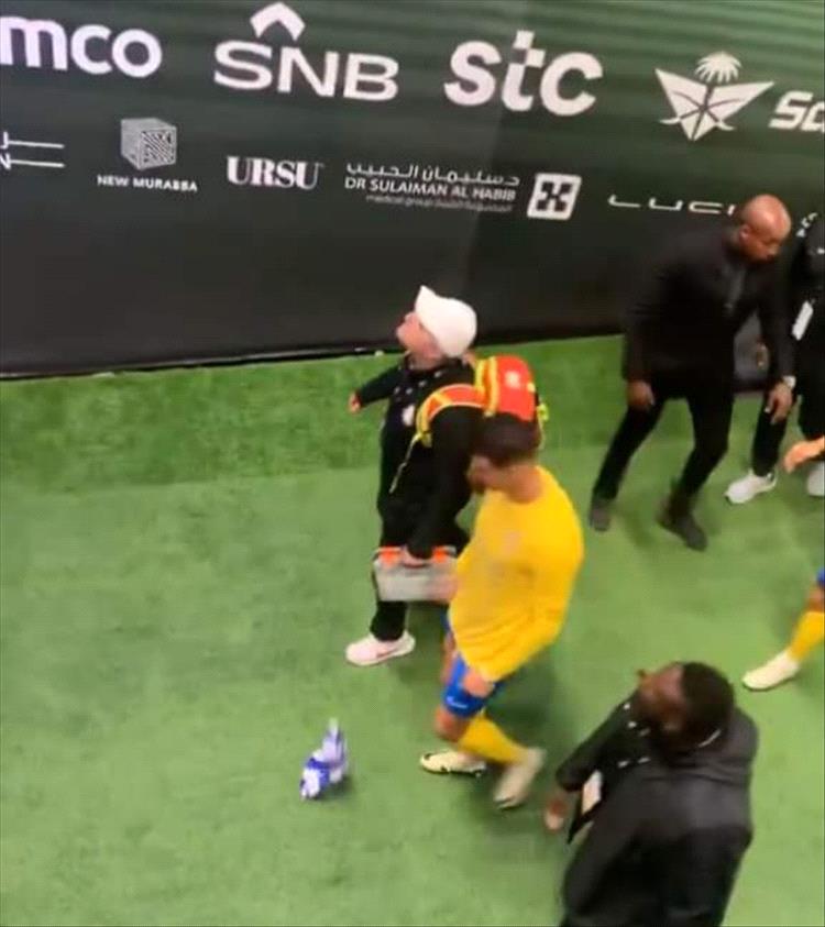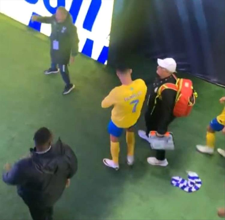 ويظهر في مقطع الفيديو المتداول لحظة خروج رونالدو من الملعب ورمي أحد الحضور لراية نادي الهلال ليقوم رونالدو بإدخال الراية في سرواله ورميها مجددا صوب الحضور الأمر الذي أثار انتقادات واستهجان نشطاء أبرزوا ذلك بتعليقاتهم.
