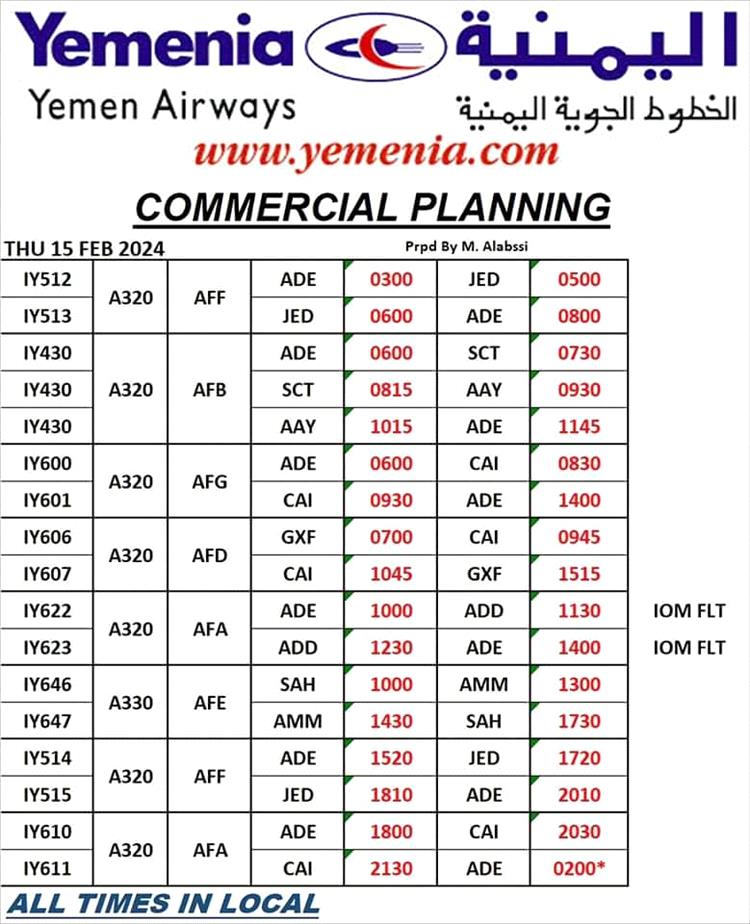 جدول مواعيد اقلاع رحلات طيران اليمنيه ليوم غد الخميس