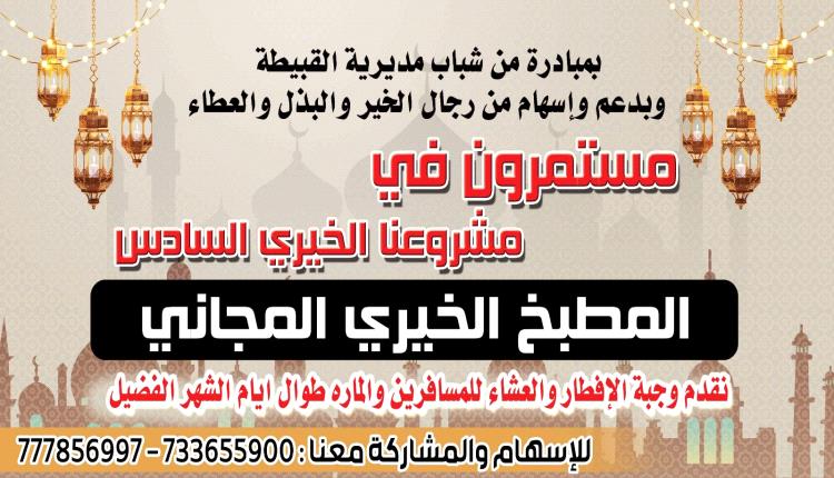 يستعد شباب مديرية القبيطة شمالي محافظة لحج لإقامة المطعم الخيري المجاني الرمضاني لإفطار الصائمين للموسم السادس على التوالى على طول الطريق الرئيس بمديرية القبيطة التي تربط بين محافظتي لحج وتعز .