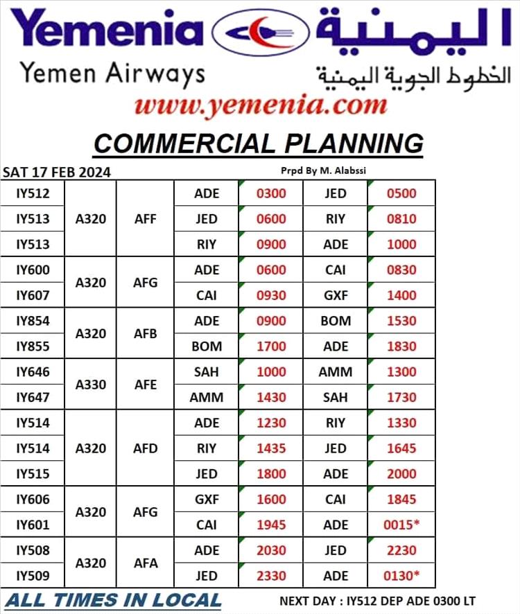 مواعيد اقلاع رحلات طيران اليمنية ليوم غد السبت كالتالي: