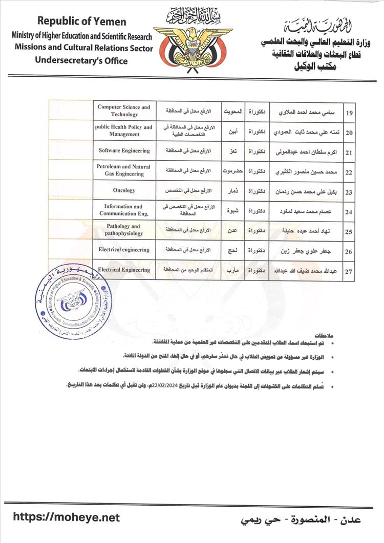 كما فتحت الوزارة باب التظلمات على الكشوفات على أن تسلم قبل تاريخ ٢٠٢٤/٢/٢٢م.