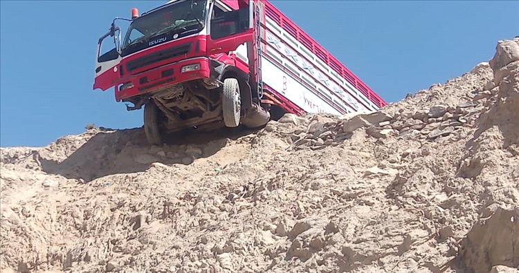 صور مروعه.. إصابة شخص ونجاة اثنين من حادث انزلاق شاحنة شمالي لحج