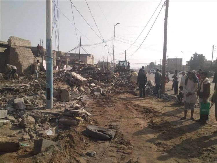 ندين قيام مليشيات الحوثي بهدم وجرف لعقارات سكنية وتجارية